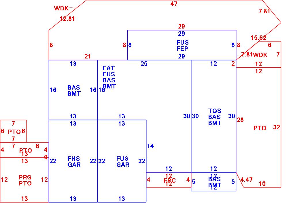 | CLP | Loading Platform | GRN | Greenhouse | UHS | Half Story (Unfinished) |
