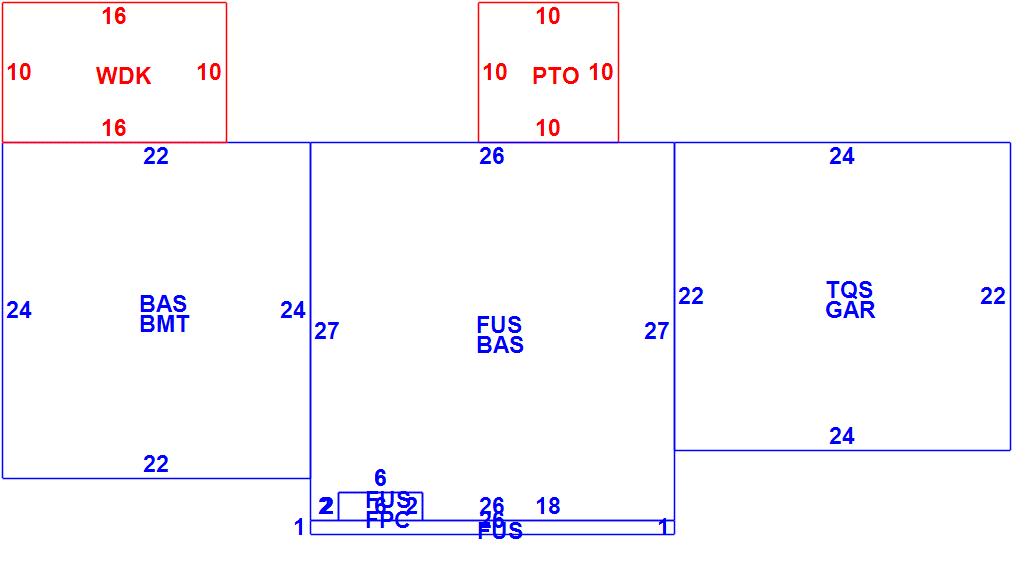 | CLP | Loading Platform | GRN | Greenhouse | UHS | Half Story (Unfinished) |